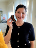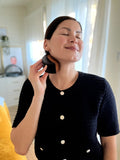 There is a misconception that the small is for face and the large for the body. The large brush is about 75% of the facial protocol and best for the neck and jawline, which is the most important when it comes to affecting the health of the skin on the face, including puffy eyes, dark circles, acne and any inflammation. It can also be used for forehead, scalp and full body.