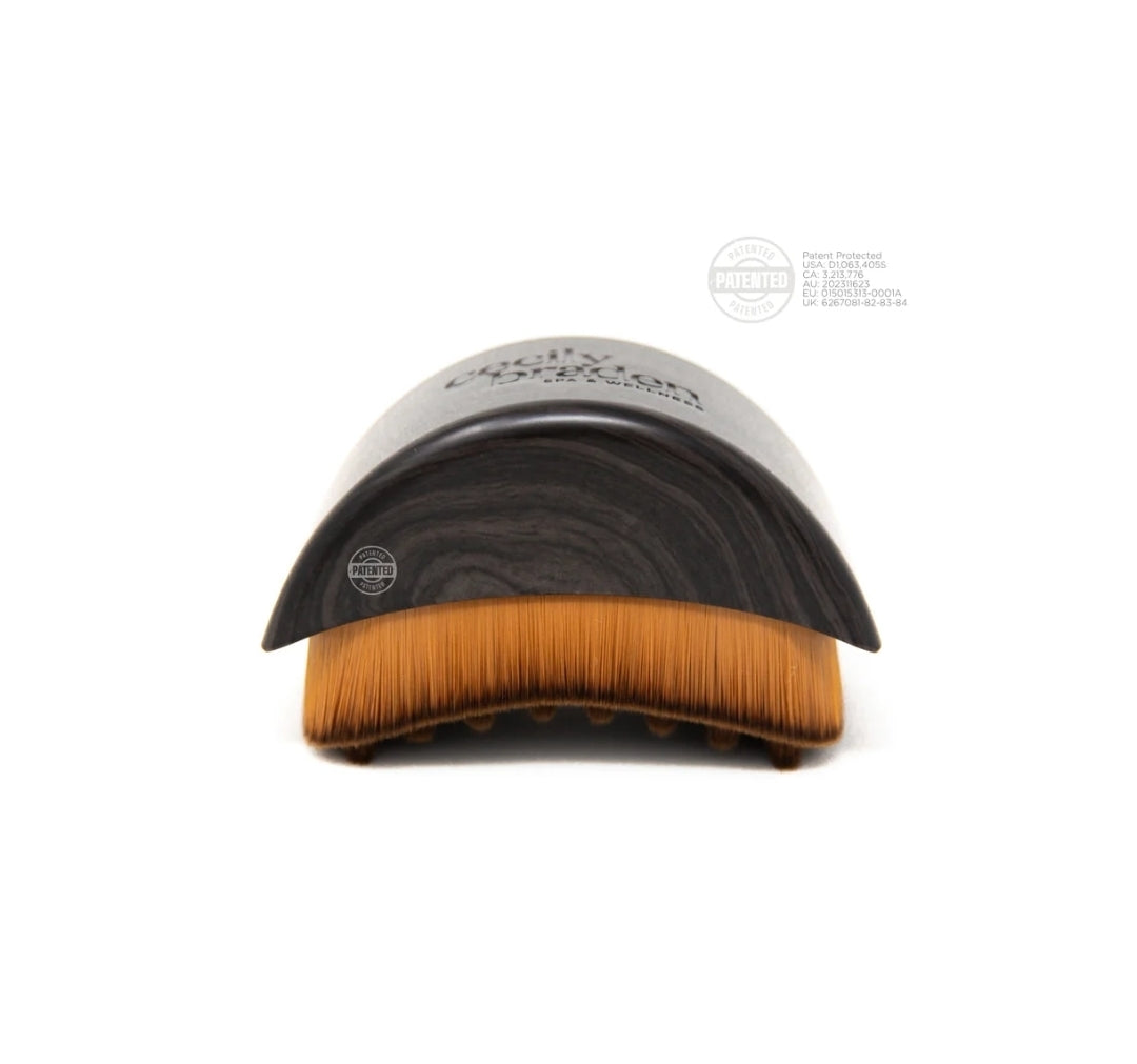 The patented design features a unique bristle pattern and density combination that grips the skin in a precise way, targeting the superficial lymph vessels residing just under the skin. When combined with specialised techniques, it mimics the passive contractions of the lymph vessels to manually propel fluids and stimulate lymph flow.